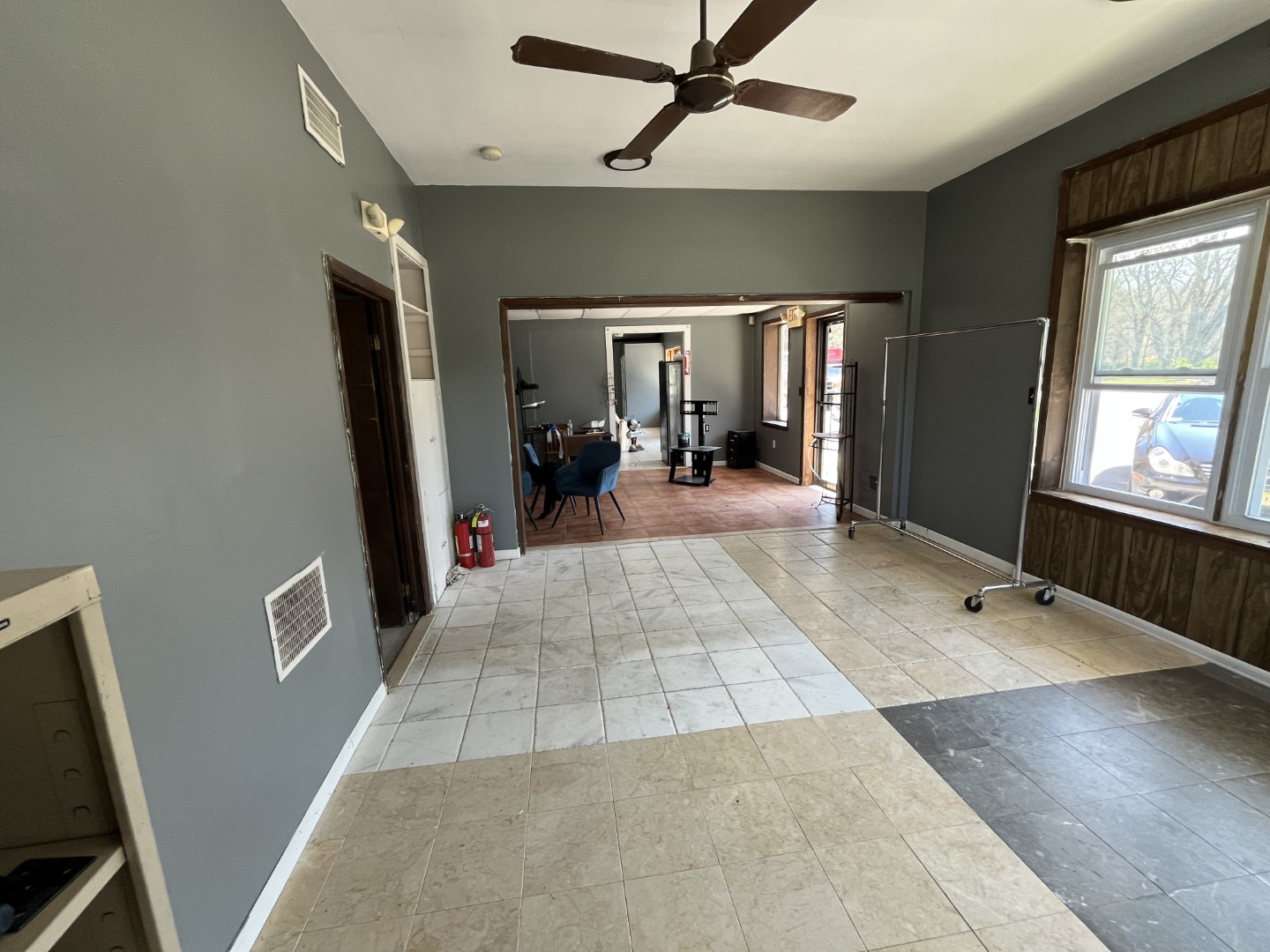 Ready for occupancy this large space contains several different rooms, and two bathrooms!